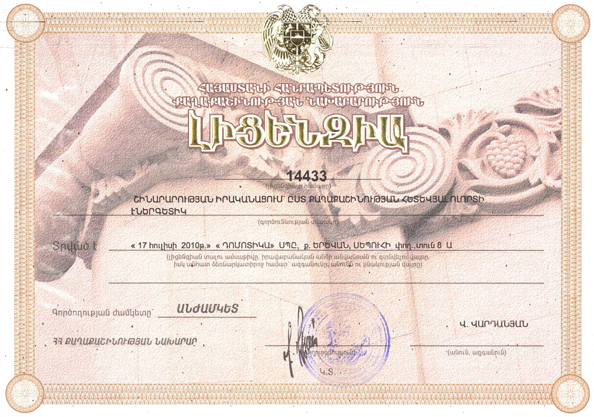 State Licenses Permitting Design of Documents and Construction in Energy Industry Field