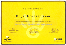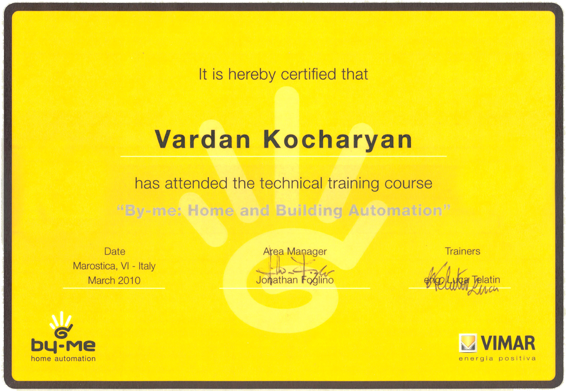 VIMAR By-Me Home and Building Automation Training Course Certificates